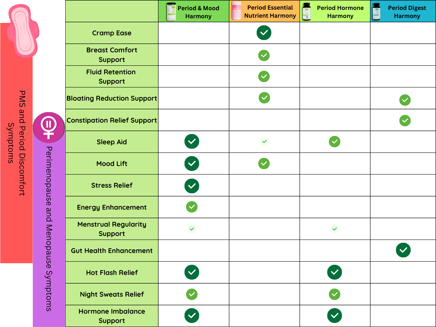 For individuals over 30, these two flagship products specifically target mood and hormone imbalances commonly experienced during menstruation or the transition to perimenopause and menopause.